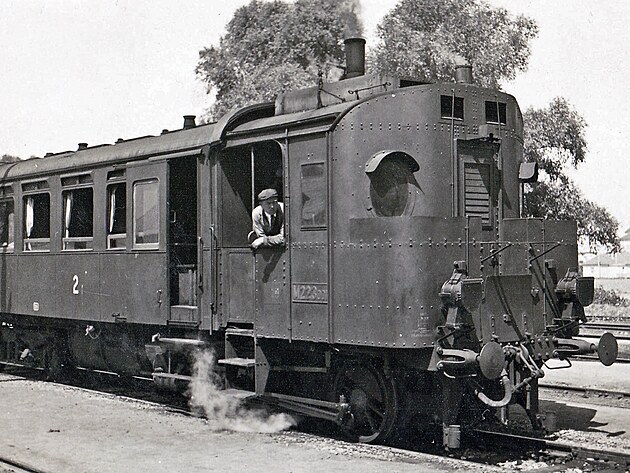 Zajímavostí bylo výhradní použití čtyřnápravového parního motorového vozu rakouské řady 1.401, u ČSD jako M223.001. Motor typu Komarek dodaly Českomoravské strojírny a podvozek společnost Ringhoffer v Praze na Smíchově. Vozidlo mělo dvouválcový kombinovaný motor s mokrou párou, rozvodem Heusinger a startovacím zařízením Gölsdorf. Mělo osm sedadel druhé třídy a 31 sedadel třetí třídy a také toaletu. Z provozu byl vyřazen až po roce 1948.