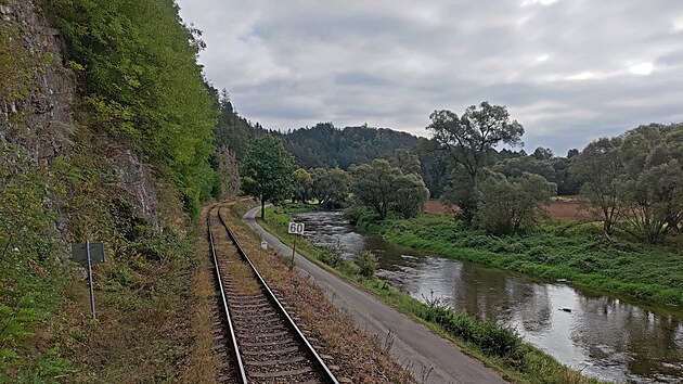 Pomalu se blížíme k cíli dnešní cesty, ke Světlé nad Sázavou. Pokud se trať místy odchýlí od řeky, vede skrz krásné louky, většinou je ale Sázava stále na dohled.