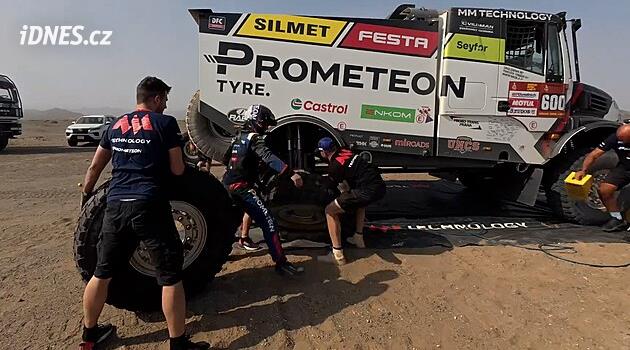 Následně jej ovšem přibrzdily další dva defekty. A protože posádky mají jen dvě náhradní pneumatiky, musel zkoušku dojet na ráfku. „Posledních 27 km po ráfku, sevřené prd… A nebyl za námi nikdo, kdo by nám pomohl. Jsme rádi, že jsme to dovalili do cíle, protože to byl souboj nervů,“ řekl Macíkův navigátor František Tomášek.