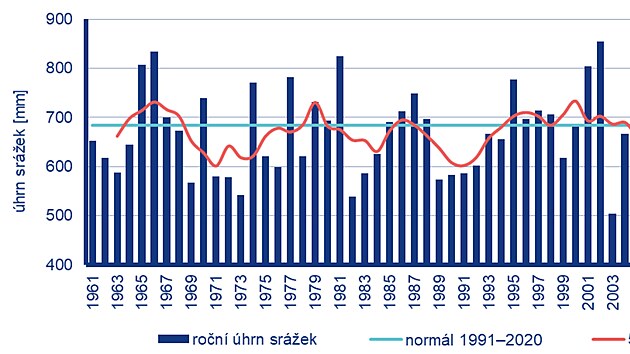 Grafy ilustrující vývoj srážek a teploty v ČR od roku 1961. Autor: ČHMÚ